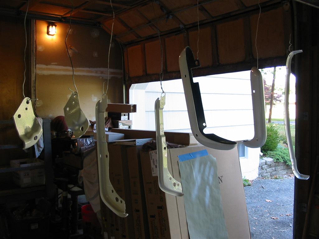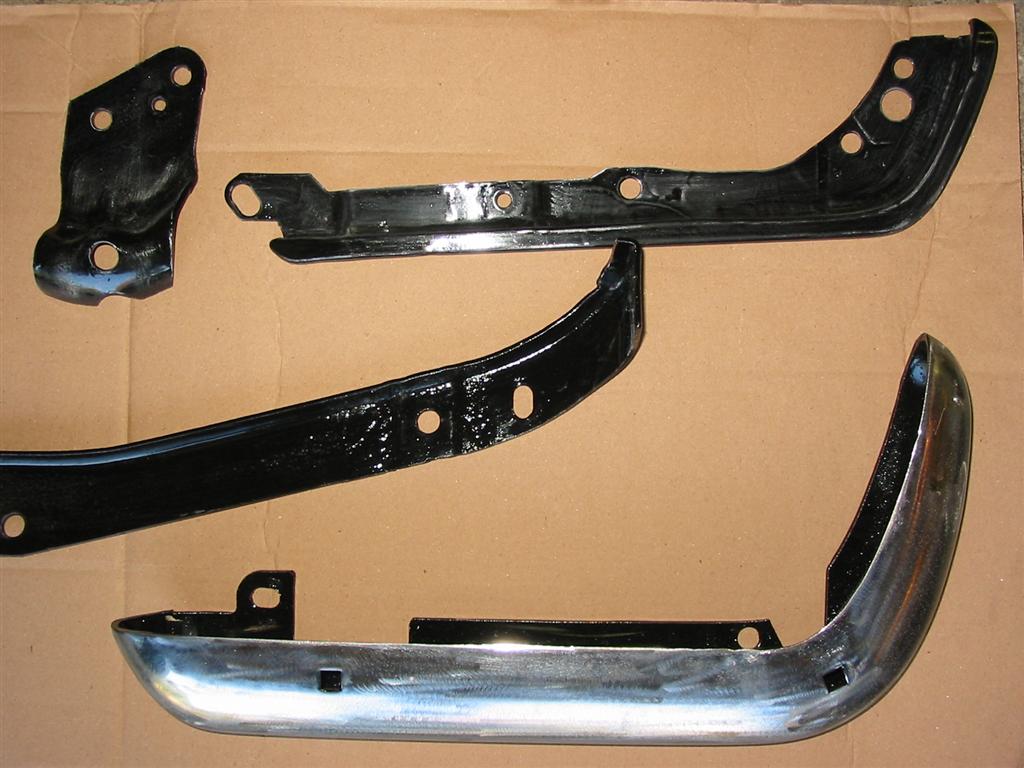The following pictures are of the front bumpers and bumper brackets after stripping and a coat of POR-15. |