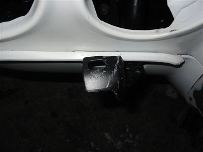 | Here is the inner front bumper mount. This mount needs to be modified so the bumper can be mounted