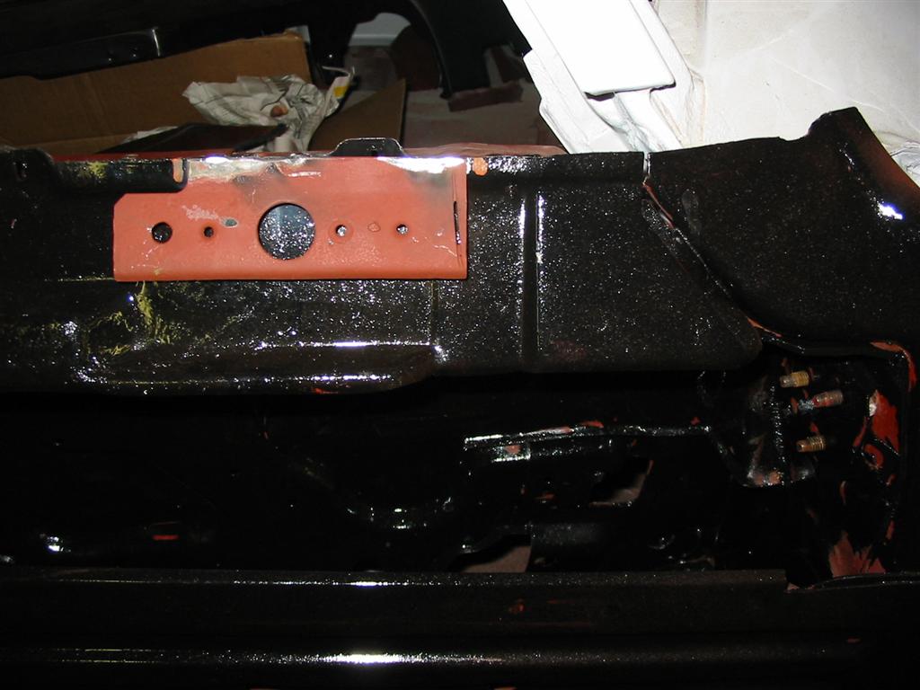| Here are the front inner fenderwells with the top coated with Eastwood Underhood Black. |