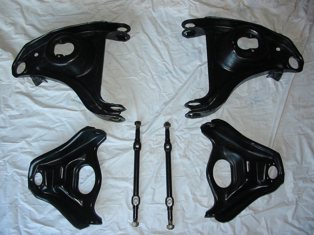 Here are the control arms after a coat of POR-15 semi-gloss black. I had originally thought