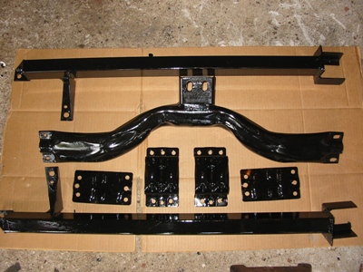 | Here are pictures of the subframe connectors, motor mounts and transmission crossmember coated