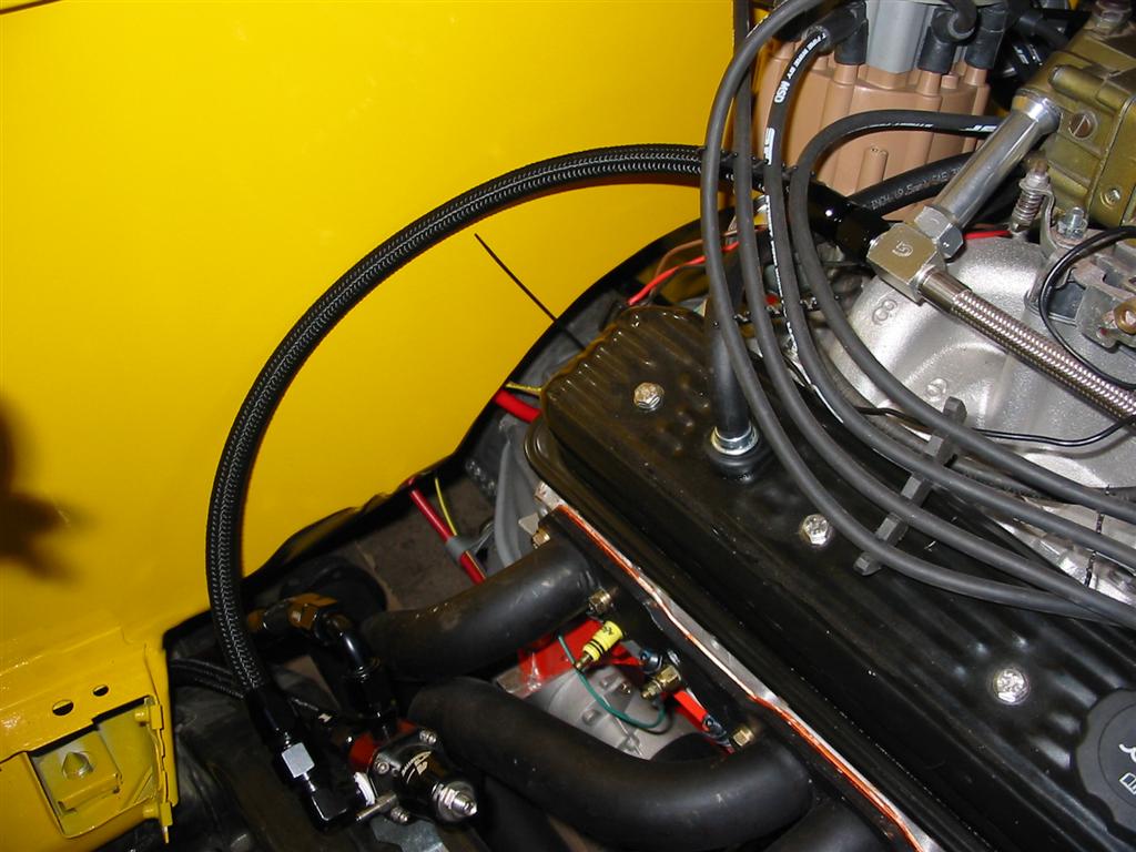 | Here is the feed line from the regulator to the carburetor. I used -08 braided hose for