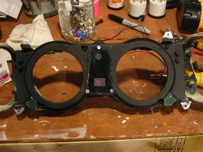 | Here is the rear of the gauge cluster cover with the gauges installed. |