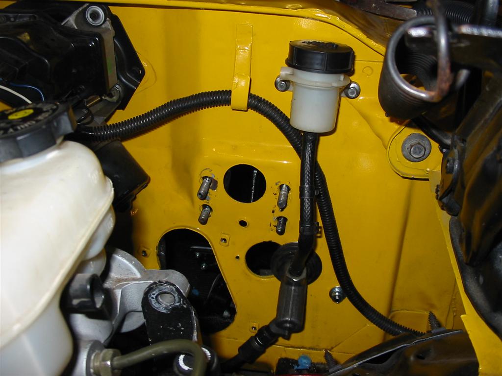 | The reservoir of the Cadillac master cylinder was not a good fit for mounting under the hood