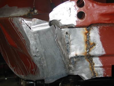 | Here are pictures of left trunk dropdown welded into place. I plug