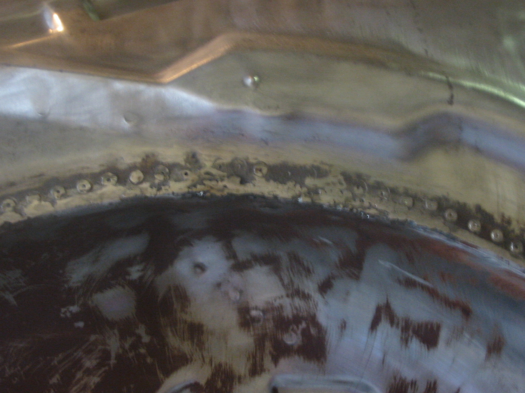 in the right rear wheelwell. This is an area where I filled a rust hole with the welder. |