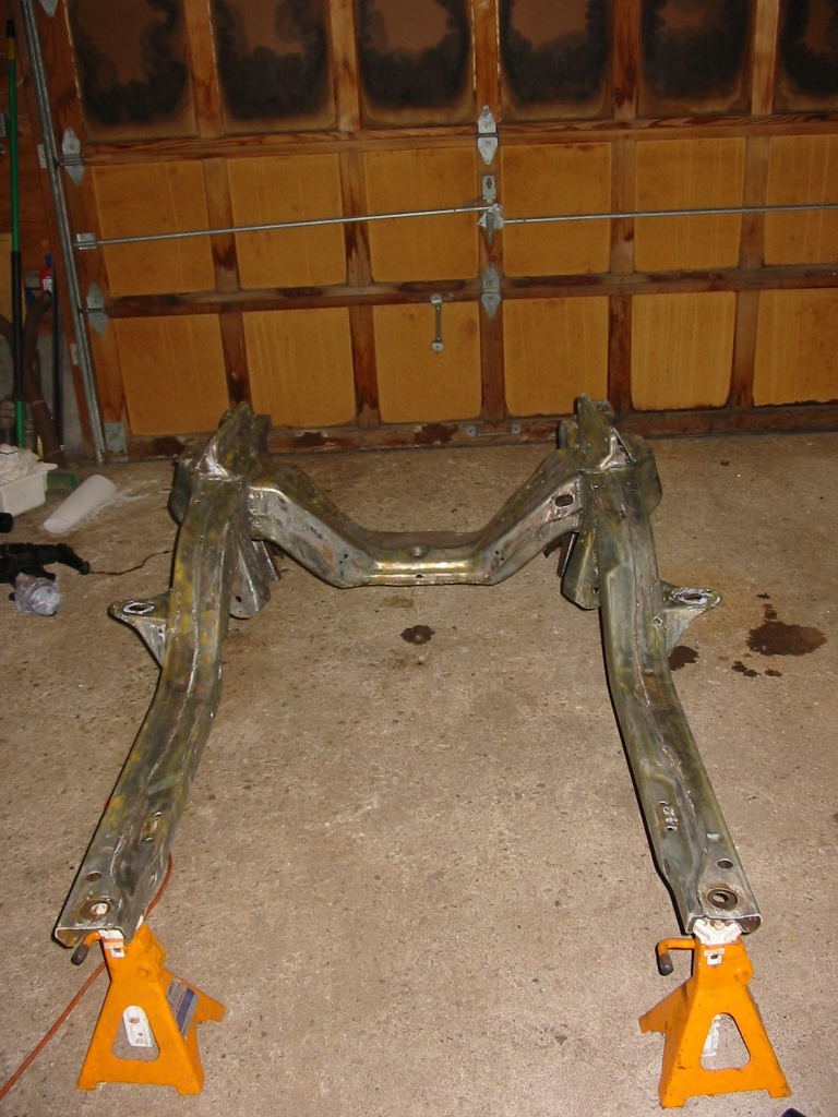 Here is another picture of the front crossmember. Noticed that I used a grinder and made