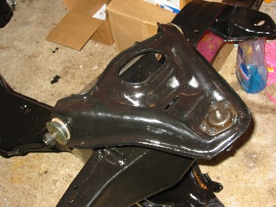 | Here is the cross shaft and bushings installed in the upper left control arm |