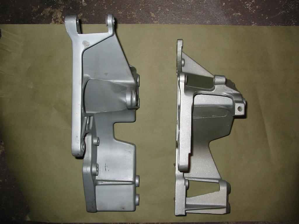 | Here is a comparison of the Alternator brackets. The TPI bracket is on the right and