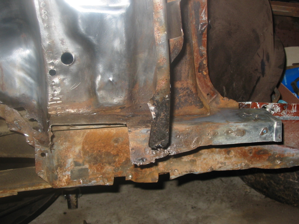 | Initial shots of the right outer rocker panel removed. I am replacing the rocker panel with a full repo part.