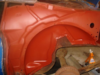 | Here are some pictures of the stripped inner wheel wells. Each one of them requires a patch in the lower front corner. |