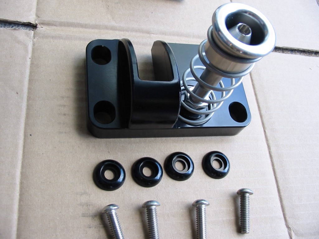 | Here are pictures of the new Fesler billet aluminum hood latch. Much nicer looking. I've also included a comparison