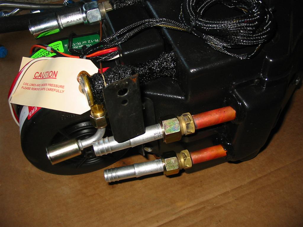 evaporator unit. I chose to run bulkhead fittings on the A/C lines and have a junction
