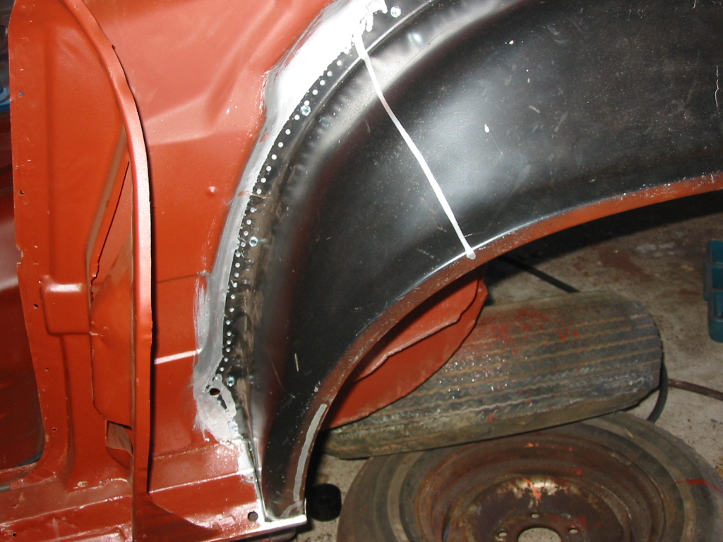| Lastly, Here are a few shots of the quarter panels being fitted on the car. This is helping