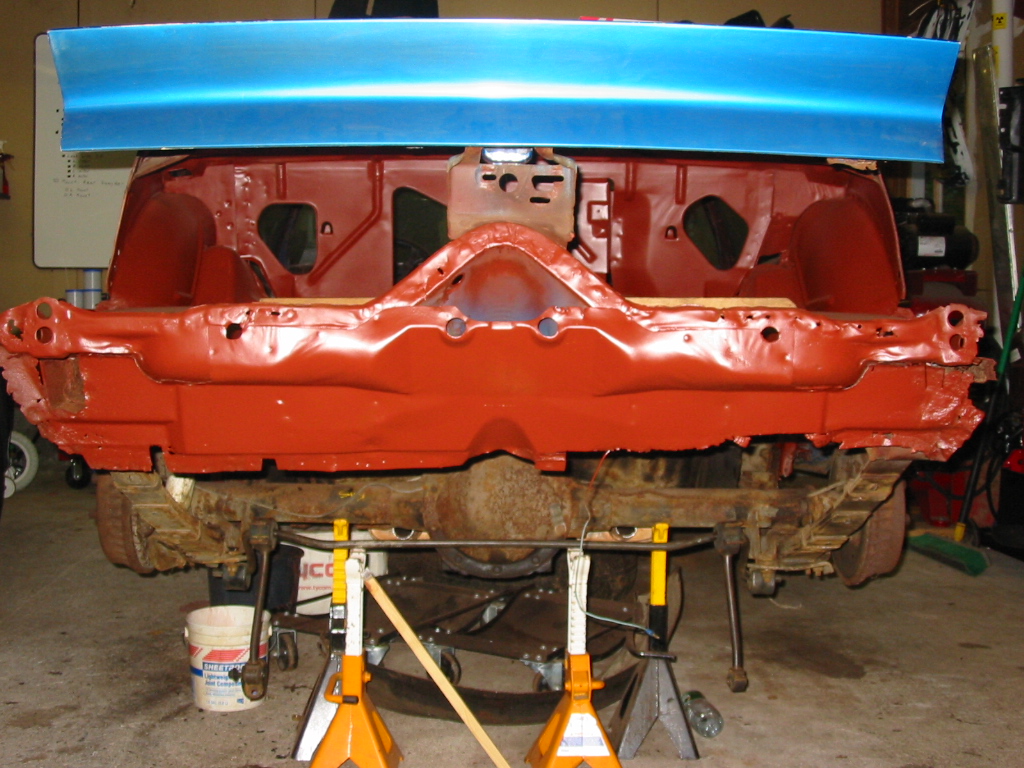 | Here is a shot of rear inner valence coated in Zero Rust. I have a lot of fabrication left to do on this panel. I need to